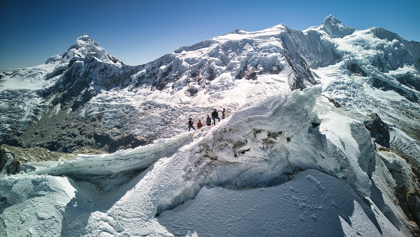 Cordillera Blanca y Cordillera Huayhuash: Nuestro principal laboratorio. Glaciares y paredes técnicas para formación realista.